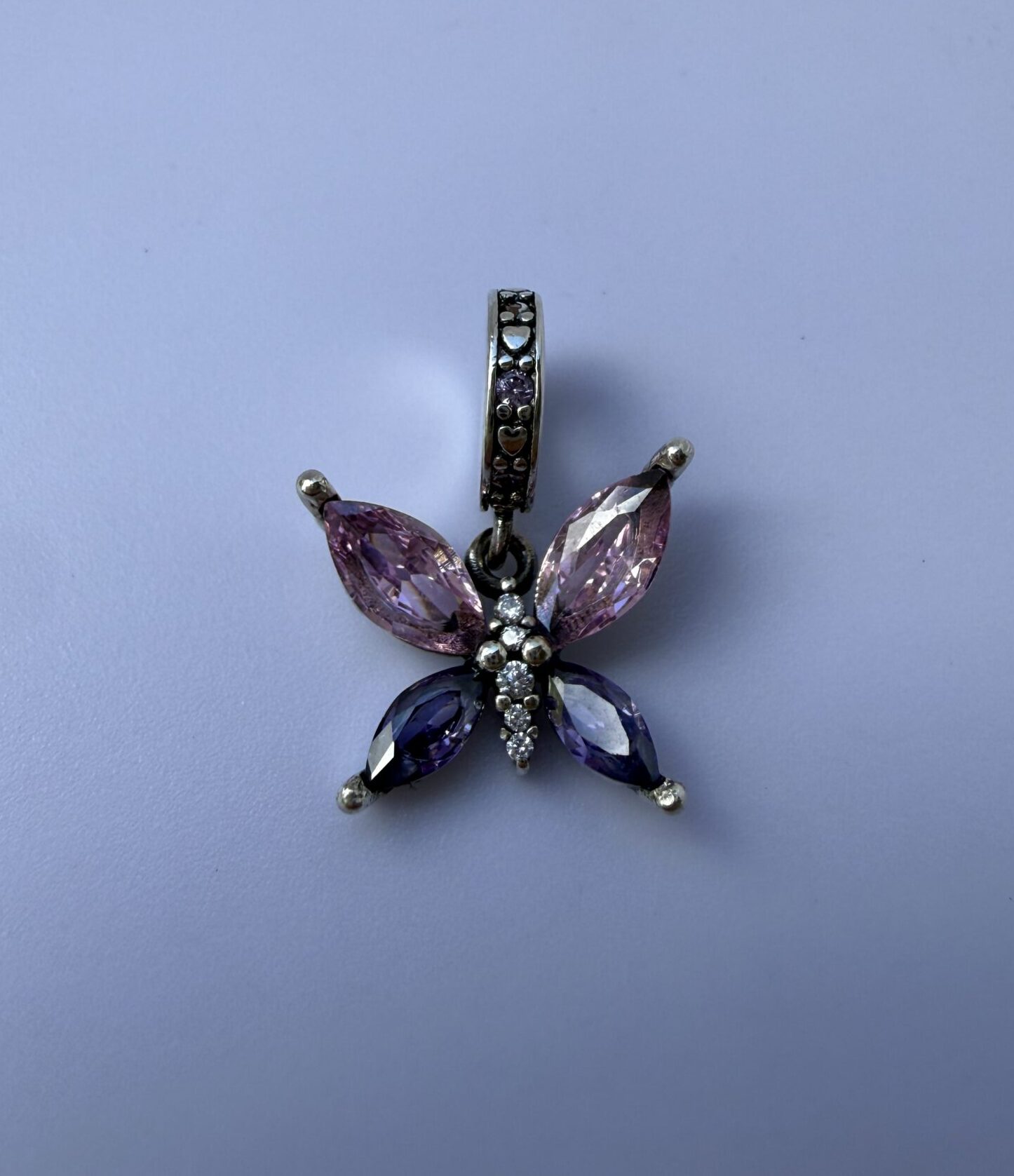 Charm con diseño en tonos de fucsia y lila.