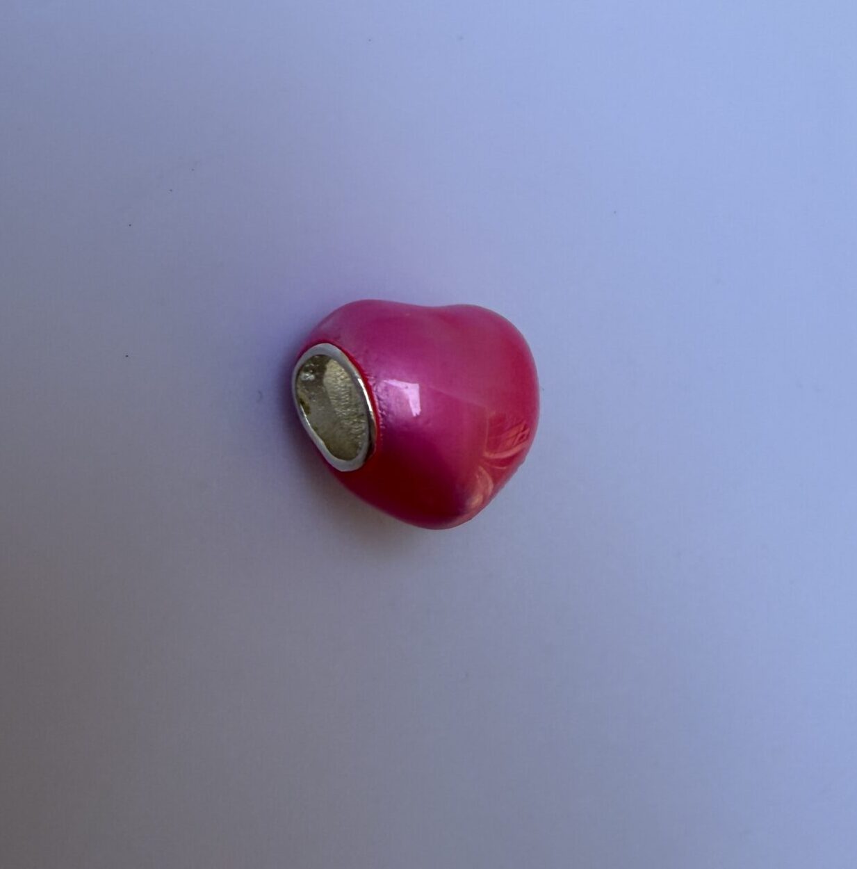 Un corazón rosa delicado y brillante, perfecto para sumar un toque romántico a tu pulsera.